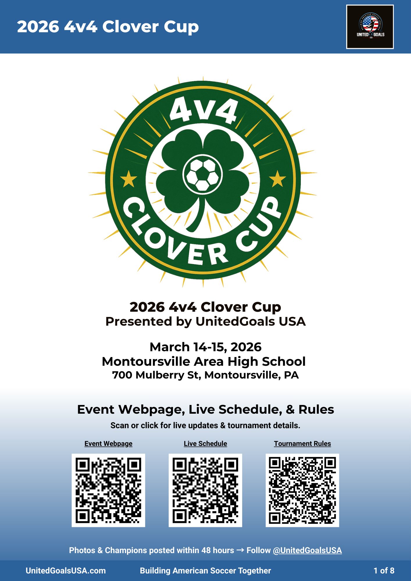 Whether you’re competing, cheering, refereeing, or volunteering, thank you for being part of it. We’re excited to kick off 2026 with you at the 4v4 Clover Cup.