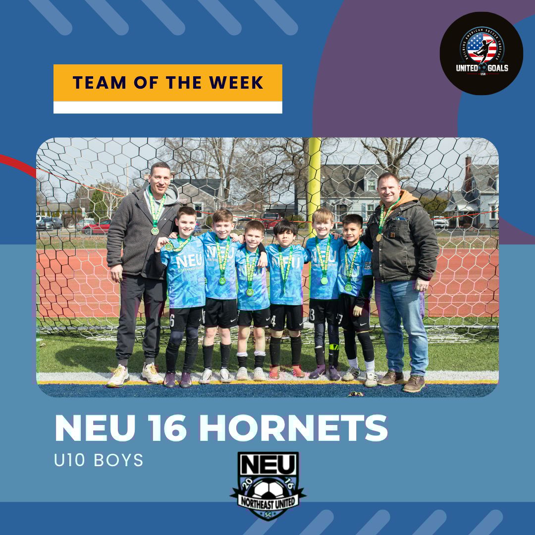 The NEU 2016 Hornets dominated the 2016 4v4 Clover Cup, finishing first in the Boys U10 Bracket with 3 wins in 3 games! They displayed strong teamwork, smart play, and a relentless attack, outscoring opponents 21-11. Great job Hornets!! |